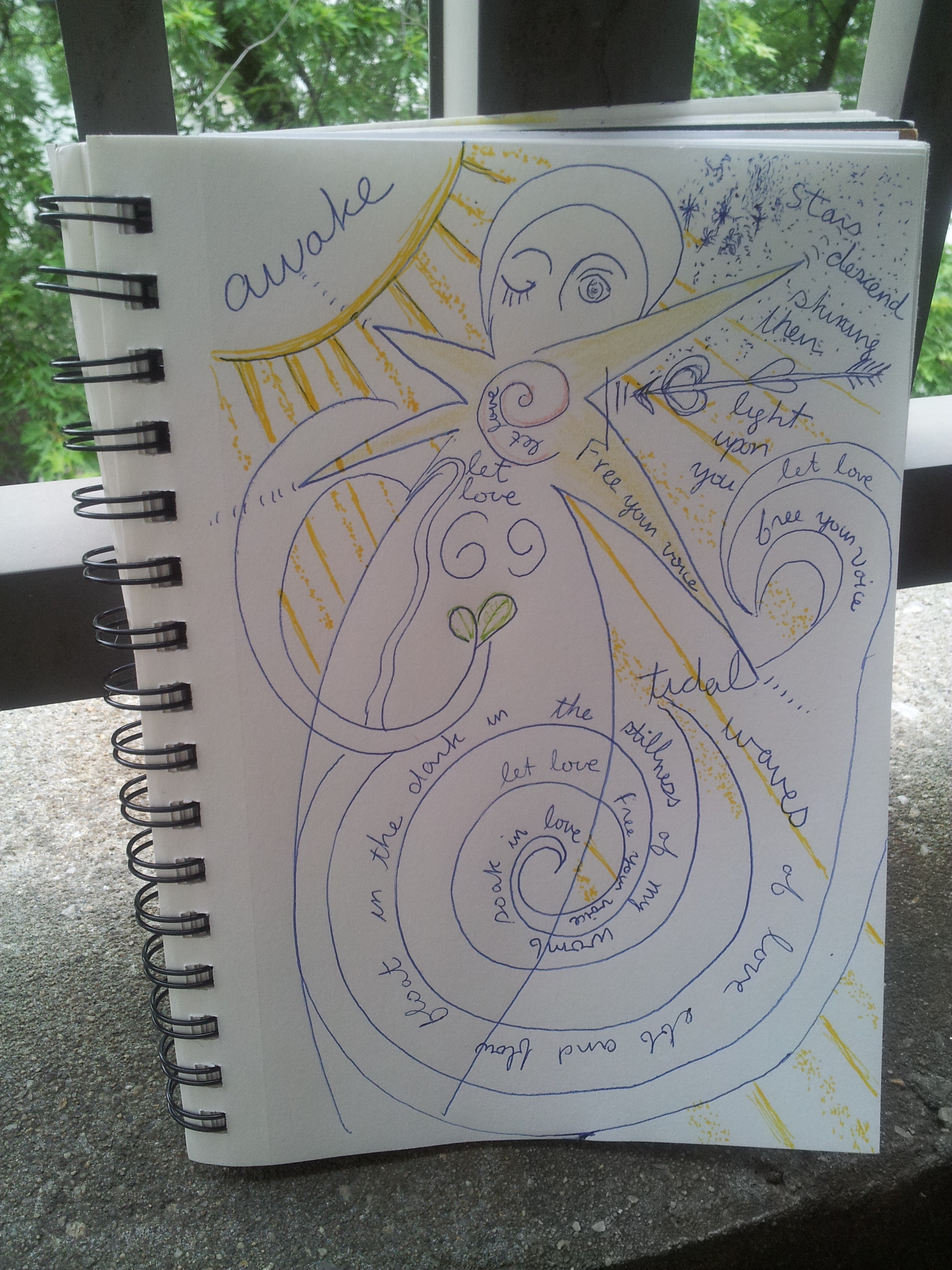 I sat on my balcony this morning to welcome summer…even though the sun wasn’t shining. The sun is here in my channelled drawing and message from Wild Woman. Celebrate today by inviting the light of the sun in to bless every cell in your body. Be Wild <3 Kiana