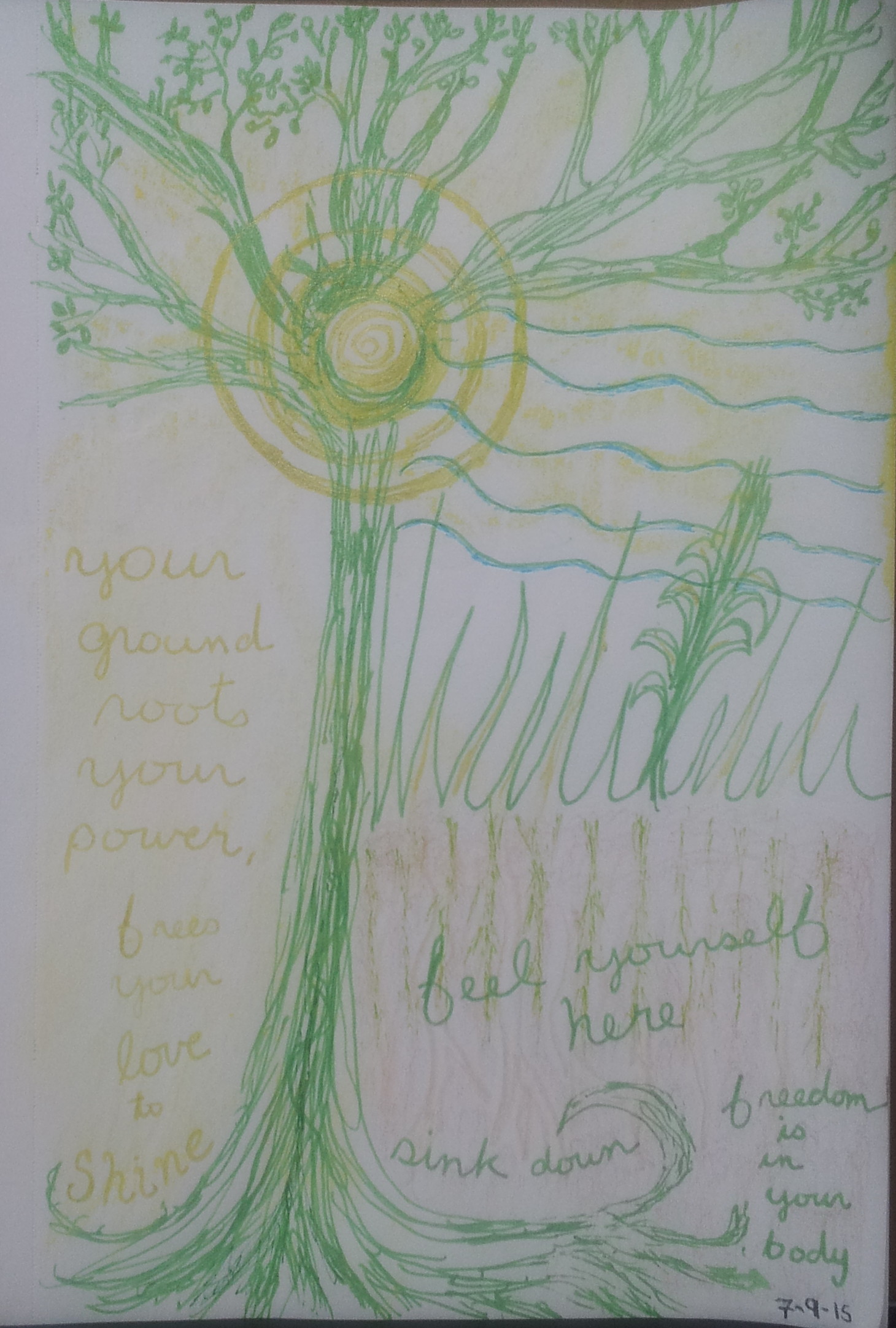 7-9-15 Your ground roots your power Wild Channeling July 11, 2015 kiana Here’s my wild channeling of the day. Loved how this came through sparkling with the magic of gel glitter pens. Hope you enjoy it <3