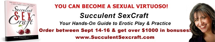 * Get my friend and colleague, the fabulous sexuality teacher Sheri Winston’s new book, Succulent Sexcraft: Your Hands-On Guide to Erotic Play and Practice. She is going to rock your world and I’m giving away a 21 Day Wild Woman Home in Your Body Blessing, 1 of 20 gifts from Sexuality Experts if you buy it starting tomorrow Sept 14 til Sept 17th. Click here to get your guide to erotic mastery and claim your free gifts.